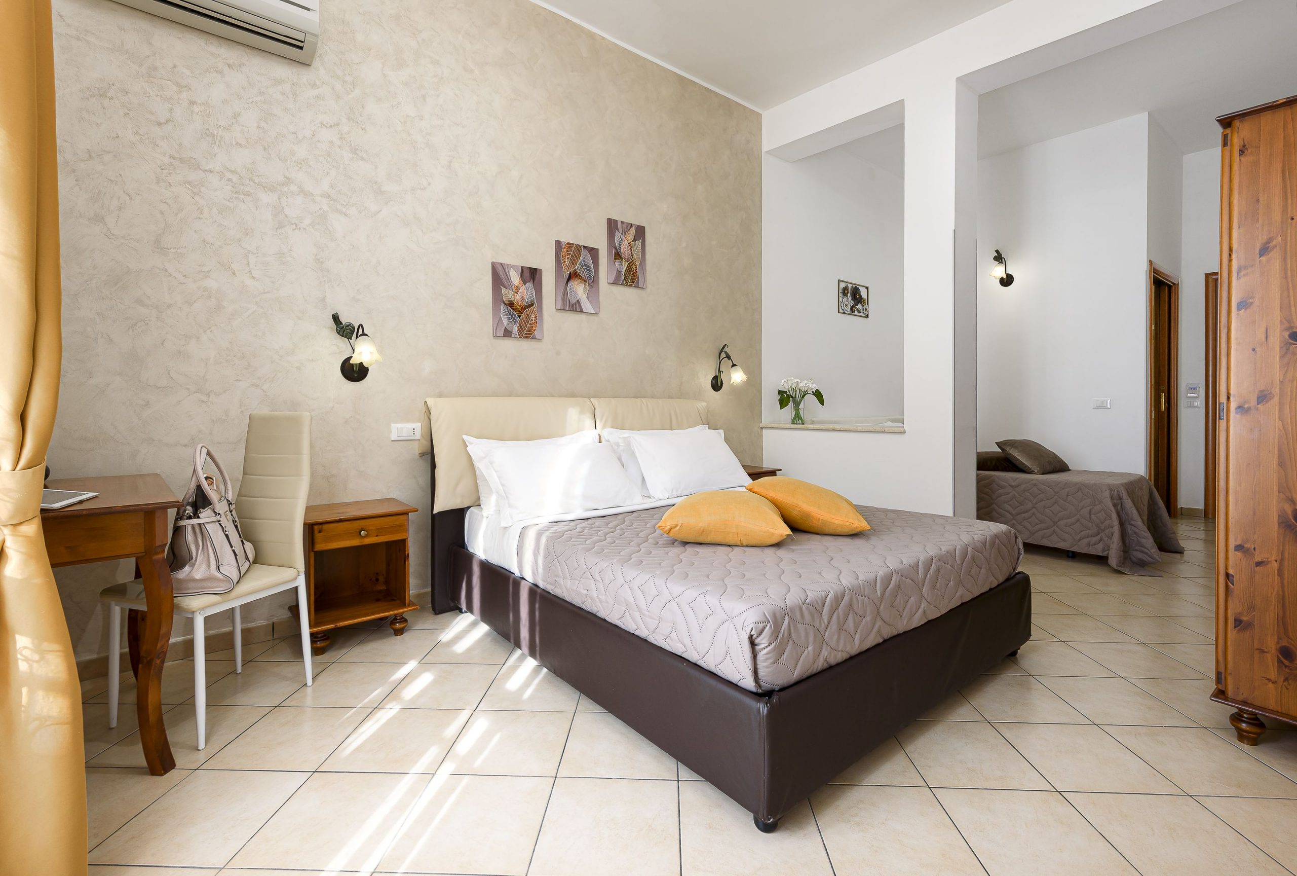 Le camere sono tutte dotate di bagno privato, asciugacapelli, telefono, TV, mini-frigo e aria condizionata, per garantire il massimo del benessere. Disponiamo di camere matrimoniali, ma anche di opzioni triple e quadruple per chi viaggia in famiglia o con amici. La posizione centrale, proprio nel cuore di piazza Carlo Barbera, regala una vista mozzafiato sulla zona balneare e sulla collina circostante, permettendo di ammirare panorami davvero unici.